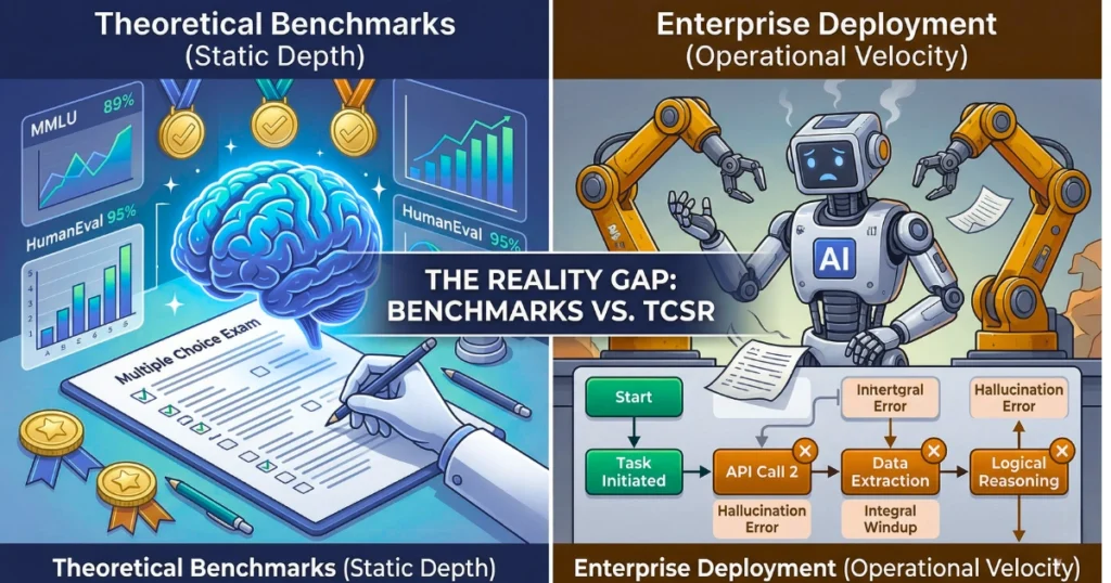 Forget the theoretical tests. Ultimately, the single metric that dictates real ROI is Task Completion Success Rate (TCSR). Academic benchmarks show you what a model memorized. In contrast, TCSR shows you if an autonomous agent can actually finish a messy, multi-step job without breaking down or needing a human to rescue it.