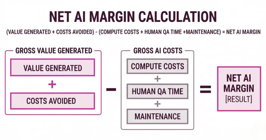 This brings us to the only metric that actually proves business value in 2026. You need to calculate your Net AI Margin.