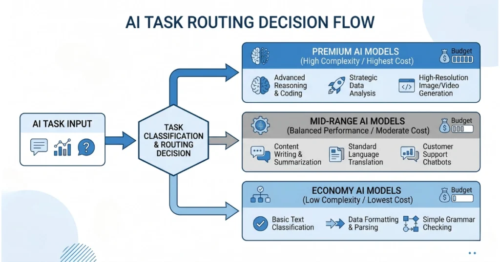 - Complex reasoning → premium model