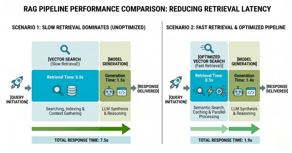 We’ve seen cases where retrieval takes 1.5 seconds while generation takes only 1 second. Meaning the “AI” wasn’t slow—the database was. For a deeper dive into structuring this correctly, review what RAG is in AI and how to optimize it.