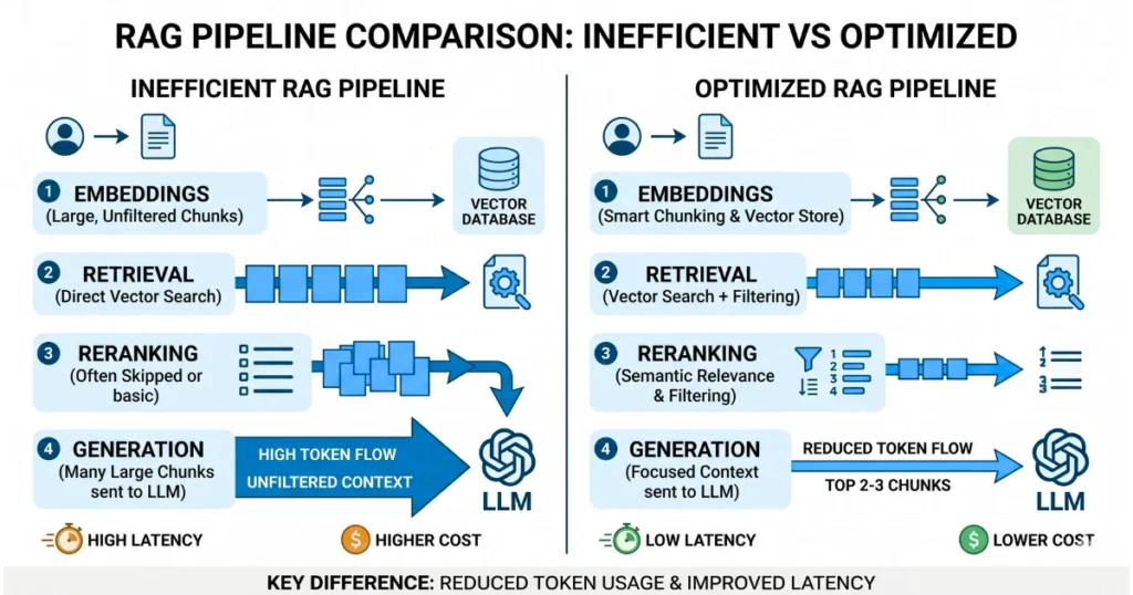 The biggest mistake: Sending too much context. If your system retrieves large chunks (1000–2000 tokens each), you’re forcing the model to read a novel just to answer a simple question.