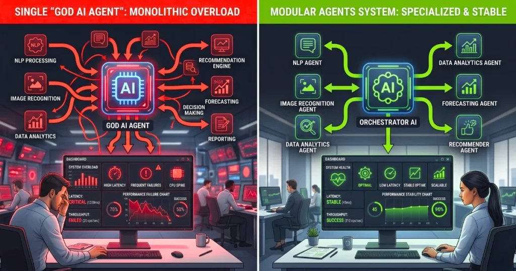 Most engineering teams assume that upgrading to the newest foundation model will inherently solve agent reliability. This is a dangerous trap. Treating your LLM as a monolithic “God brain” that handles planning, routing, and execution simultaneously leads to catastrophic failure.
